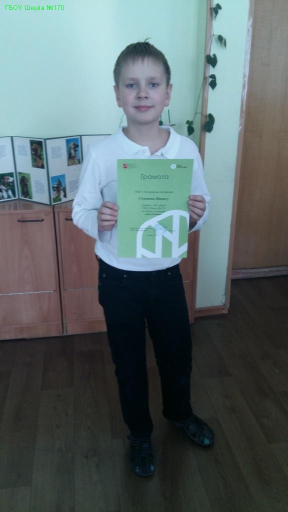 Поздравляем ученика 5"В" класса Никиту С. - победителя конкурса "Леса России", организованного ГПБУ «Мосприрода»