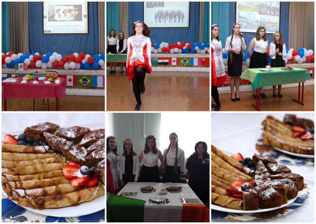 Нашу школу представляли учащиеся 8 «е» класса: Софья, Полина, Кира, Варвара, они представляли Ирландскую кухню. Ирландские блинчики и кекс с портером. Обучающиеся нашей школы стали победителями в номинации «Лучшая творческая работа». Руководитель - Алексеева Ольга Анатольевна, учитель технологии корпуса 6.