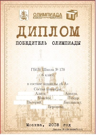 В этом году 6 класс «А» принял самое активное участие в олимпиаде «Музеи. Парки. Усадьбы». По итогам олимпиады команда 6 «А» стала победителем! Поздравляем ребят и желаем дальнейших успехов!