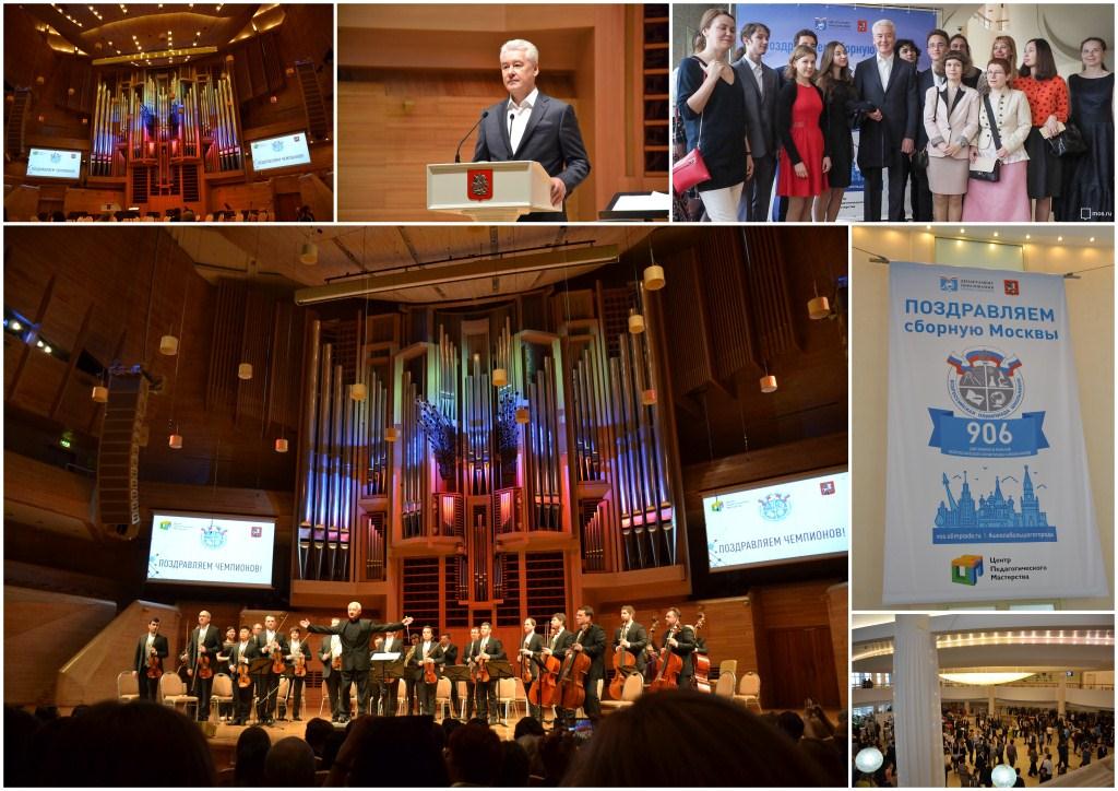 Торжественное мероприятие, посвящённое победам московских школьников во Всероссийской олимпиаде школьников, состоялось в Московском международном доме музыки19 мая.