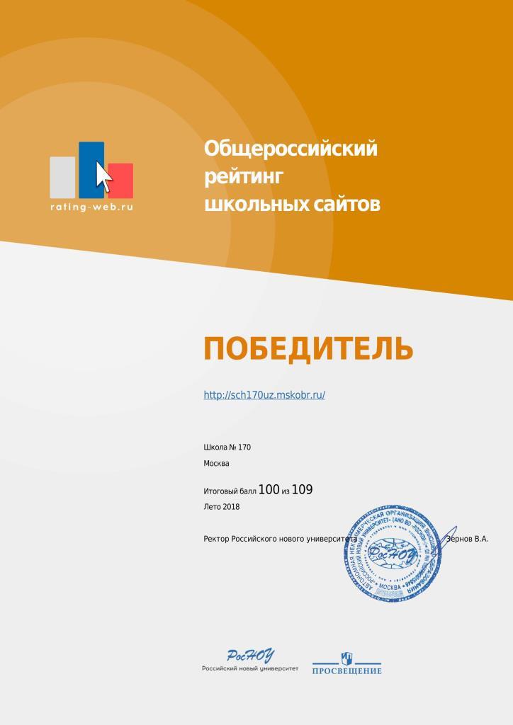 Сайт школы №170 - Победитель Общероссийского рейтинга школьных сайтов
