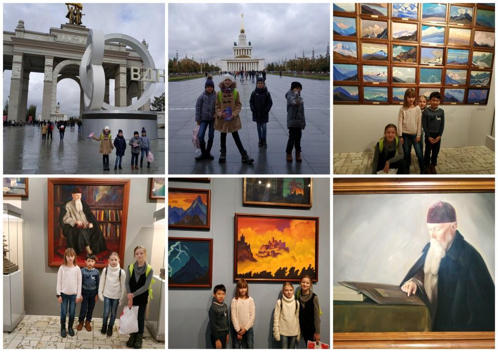 11 октября, в рамках олимпиады «Музеи. Парки. Усадьбы», учащиеся 3 класса «А» побывали в Музее Рерихов. В этом музее на ВДНХ экспонировано около 400 произведений, представляющих весь спектр художественного творчества Николая и Святослава Рерихов. В экспозицию вошли живописные полотна Рерихов, произведения восточной скульптуры, тибетские иконы (танки), собранные Николаем Рерихом в период научно-художественной экспедиции в Индию и Центральную Азию, которую художник предпринял в середине 1920-х годов. Живопись Николая Рериха, представленная в экспозиции, охватывает 45 лет его творческой жизни.