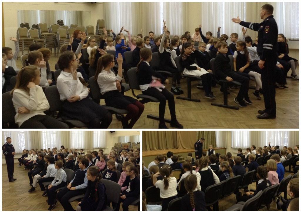 Сотрудник ГИБДД ЮЗАО встретился с обучающимися 3-х классов и ещё раз напомнил детям правила безопасного поведения пешехода. На конкретных примерах детям рассказали, что может стать причиной аварийной ситуации и травмирования участников дорожного движения.