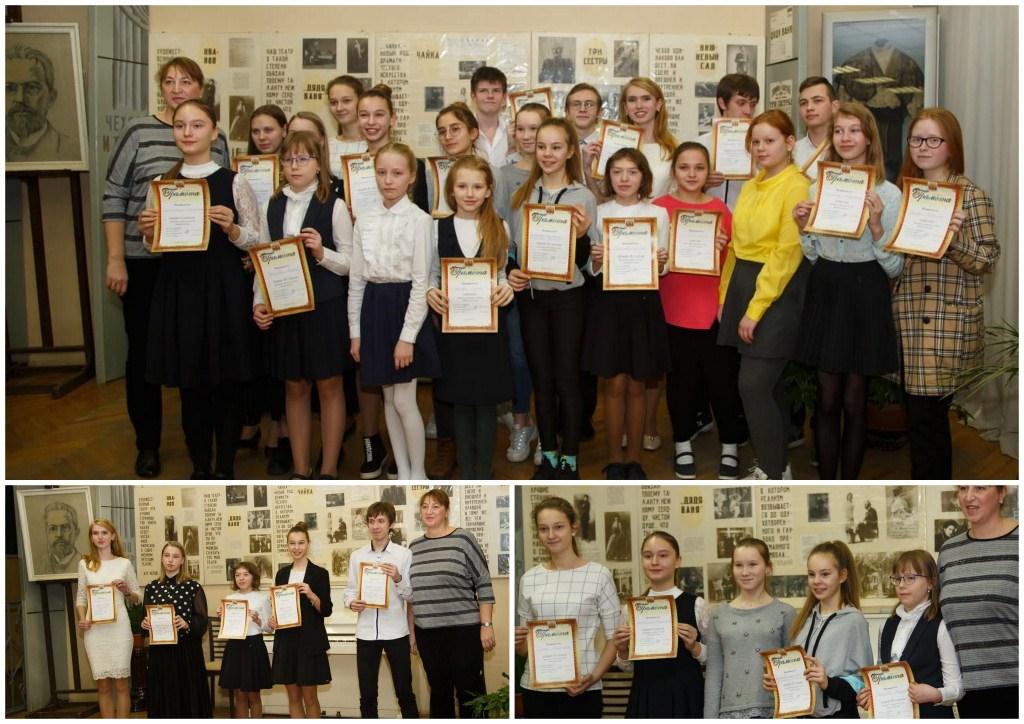 30 января в школьном музее А.П.Чехова прошел конкурс чтецов «Читаем Чехова». В конкурсе принимали участие обучающиеся 5-10-х классов нашего комплекса. Ребята читали отрывки из рассказов великого писателя, монологи из его пьес. Жюри конкурса оценивало выступления в соответствии с утвержденными критериями и определило призеров и победителей. Все участники были награждены грамотами. Огромное спасибо всем участникам и организаторам, а также учителям литературы, помогавшим учащимся в подготовке к конкурсу. Поздравляем победителей!