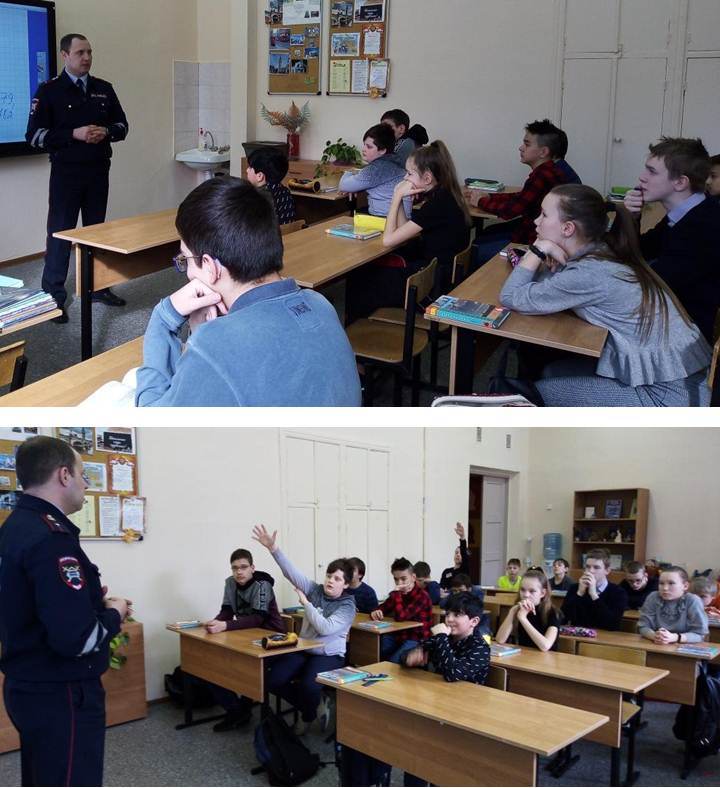 Сотрудники ГИБДД ЮЗАО провели минутки безопасности в 7-х и 6-х классах по адресу Профсоюзная, 98А. Обучающиеся активно отвечали на вопросы инспектора, демонстрировали хорошо знание правил дорожного движения.