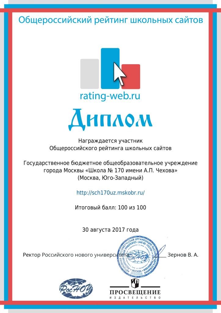 по результатам Общероссийского рейтинга школьных сайтов 2017 года