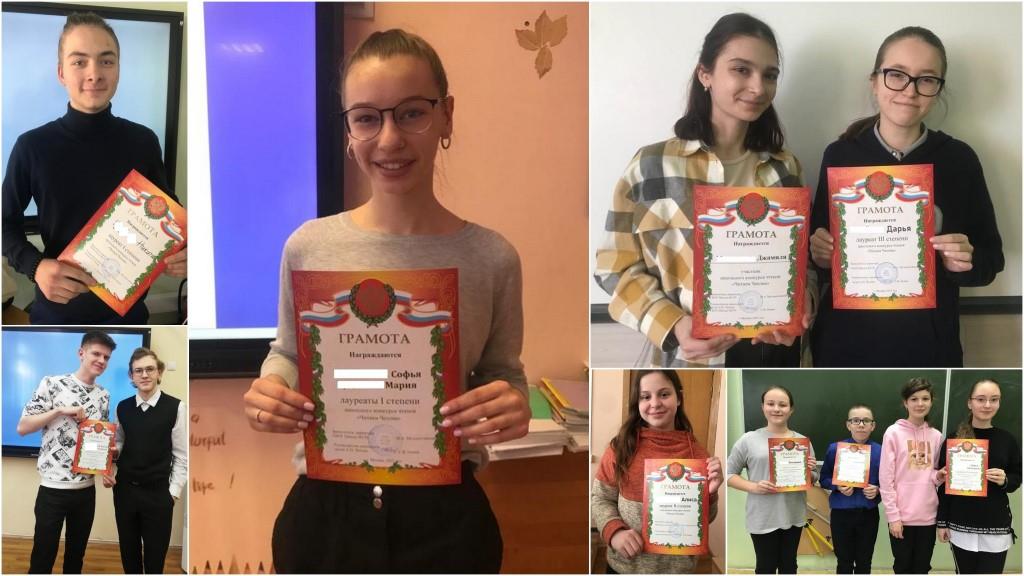19 февраля завершился ежегодный конкурс чтецов «Читаем Чехова». Ребята с энтузиазмом участвовали в конкурсе, продемонстрировав не только знание произведений А.П. Чехова, но и великолепное актерское мастерство. Все участники мероприятия получили заслуженные дипломы.