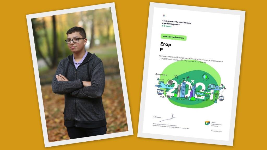 Поздравляем ученика 7 «Г» класса — Егора Р. - победителя олимпиады «Готов к жизни в умном городе!».