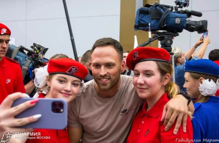 Среди встречающих была и ученица нашей школы - юнармеец Елизавета Ч. Лиза призналась, что с напряжением следила за ходом игр и всей душой болела за сборную России и за Никиту Нагорного. "Такой пример помогает двигаться вперёд и достигать целей",- прокомментировала Лиза.