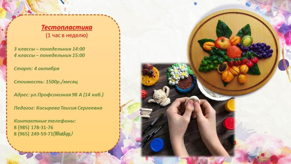 Тестопластика – лепка декоративных изделий из солёного теста, является одним из видов художественного конструирования и является мощным способом развития у детей умственной активности, творчества, художественного вкуса и многих других качества.
