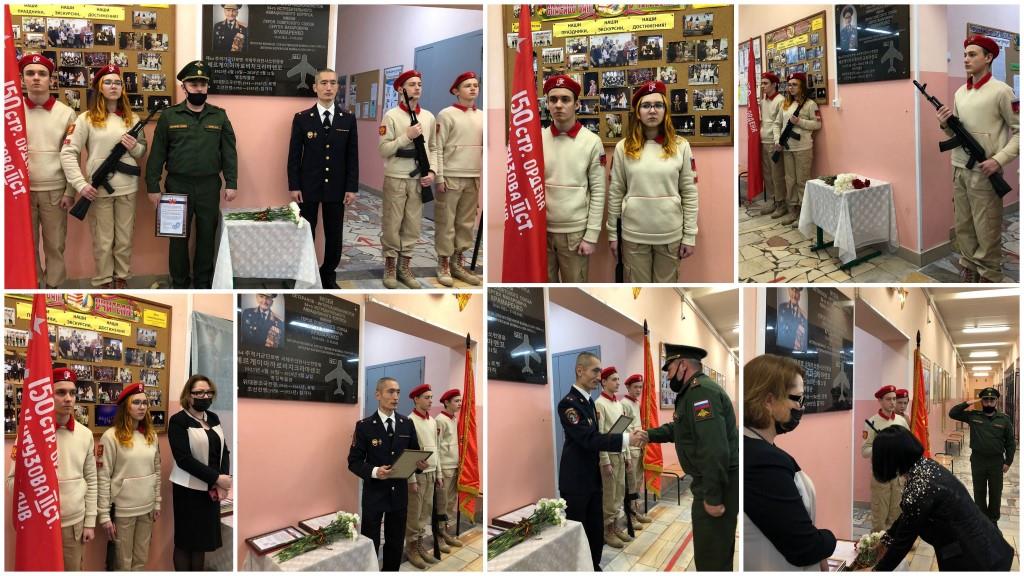 Право нести почетный караул во время открытия мемориальной доски «Ветеранов-интернационалистов 64-истребительного авиационного корпуса имени героя советского союза Сергея Макаровича Крамаренко» получили воспитанники 9-го кадетского класса.