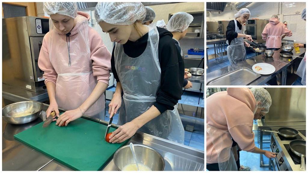 Наши ребята учились готовить яичницу под контролем профессиональных поваров на практических уроках в Колледже сферы услуг № 32.