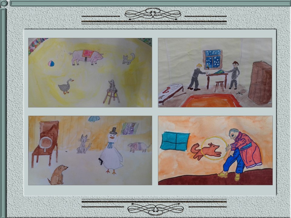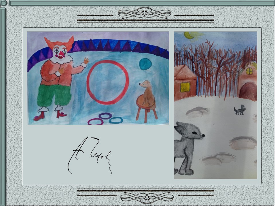 Ученики 4-х классов под руководством учителя ИЗО Дроздовой О.А. выполнили рисунки на тему "Рассказы А.П.Чехова глазами детей".