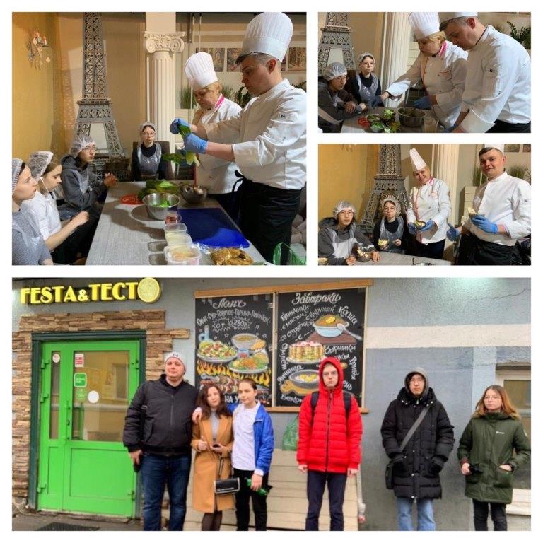 11 апреля в рамках проекта «Профессиональное обучение без границ» преподаватели колледжа сферы и услуг № 32 провели мастер-класс в кафе Festa&Тесто. Профессиональные повара Светлана Геннадьевна Алешина и Николай Александрович Поздняков показали ребятам, как приготовить классический салат «Цезарь».