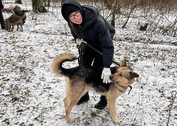 В приюте собаки не умеют гулять на поводке и наша задача научить их этому.