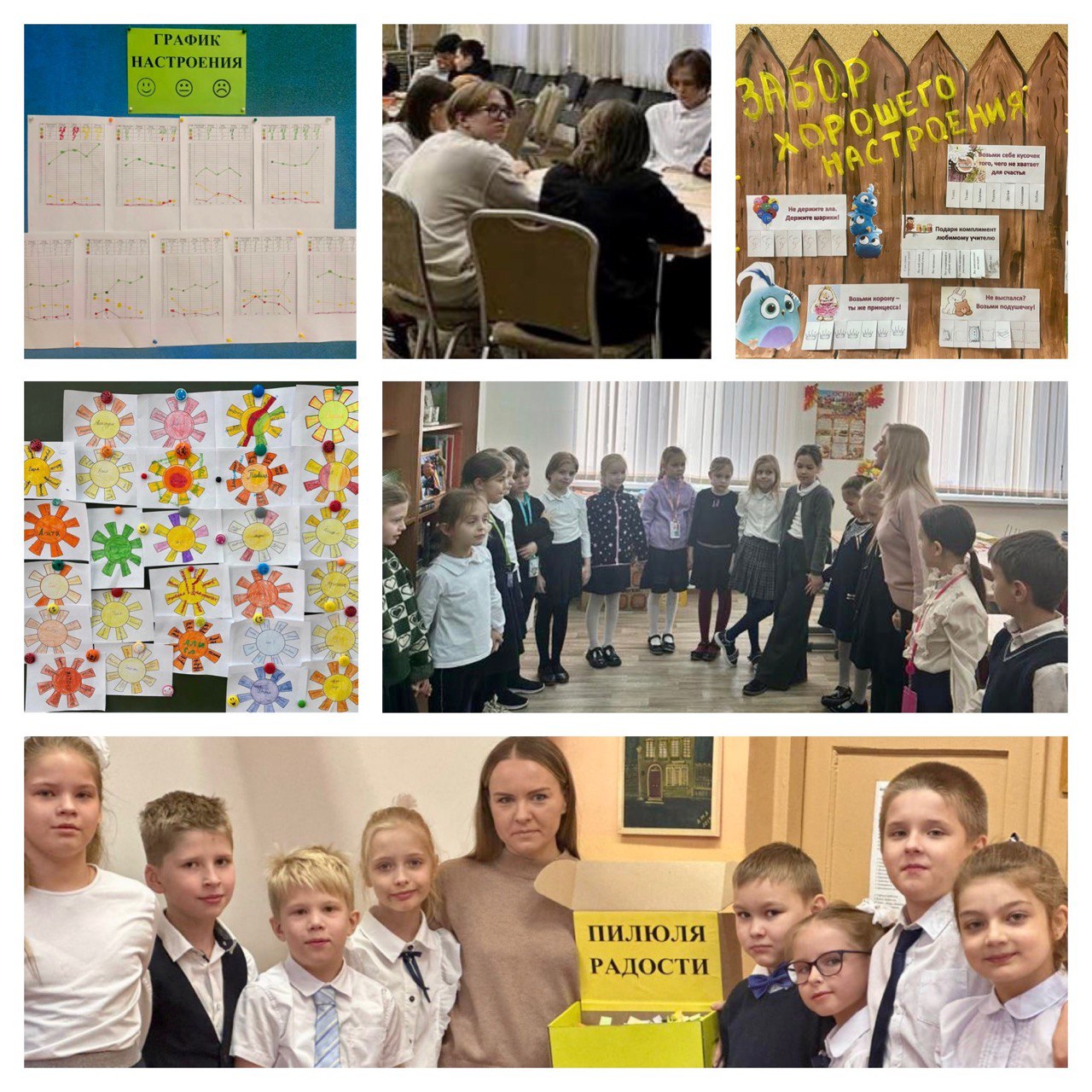 Игровые занятия "Давайте дружить" в параллели 1 классов, во 2 классах «Каждый ценен», в 3 - 4 классах «Волшебное превращение», в 5-7 классах была проведена игра «Следопыты», 8–11 классы приняли участие в мастер-классах «Самооценка - как повелевать собой и всем миром», «Болталка - актуальные проблемы подростков», «Мы выбираем, нас выбирают». Также в течение недели ребята начальной школы наблюдали за своим настроение и отмечали его в «Графике настроения». Каждый ученик нашей школы получил свою «Пилюлю настроения».