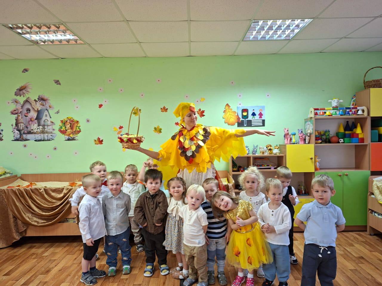 Наши малыши окунулись в атмосферу золотой осени: играли, пели, угадывали листья и собирали корзины с осенними подарками. Это замечательное время для творчества и совместных весёлых моментов!
